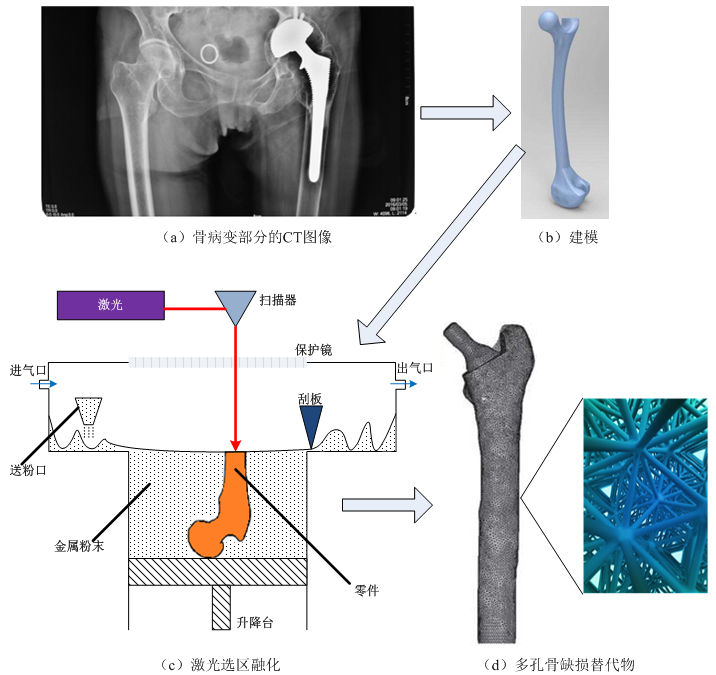 图1-1:基于增材制造的多孔金属骨优化加工过程示意图