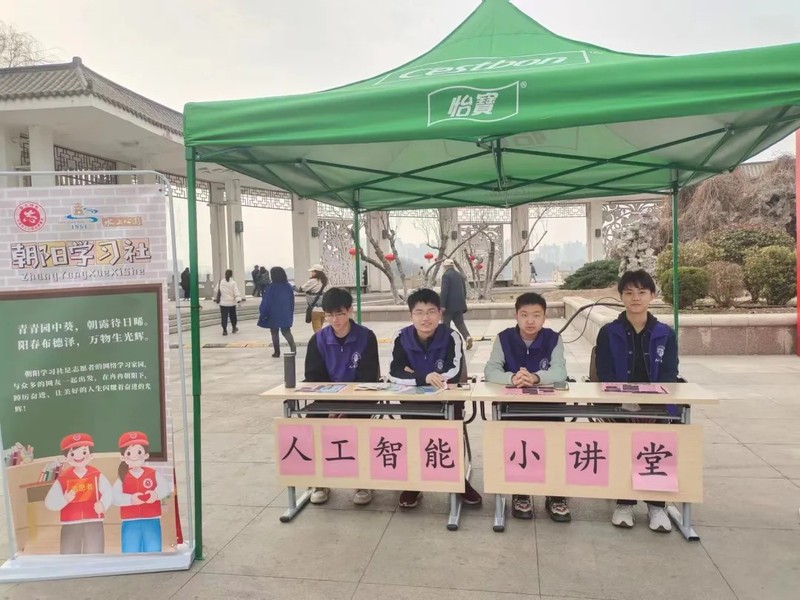 同时,志愿者们还设立了人工智能知识科普站点——“智能小课堂”,为人们发放有关人工智能的宣传手册,许多游园家长和孩子驻足咨询,并为志愿者们生动有趣地讲解拍手称赞。